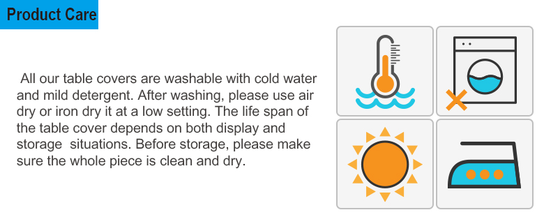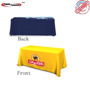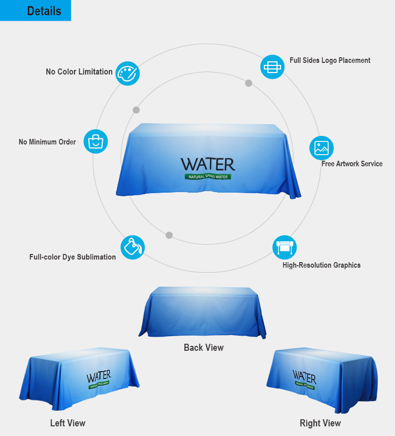 This table skirt, also known as a tablecloth, is printed using a full-color dye-sublimation procedure.
