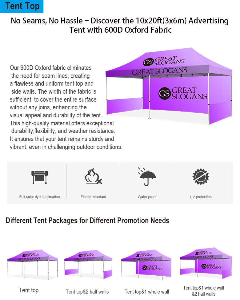 Note:The fabric of roof is 600D oxford ,it is full printing and no joining so that it can't break the image perfection.